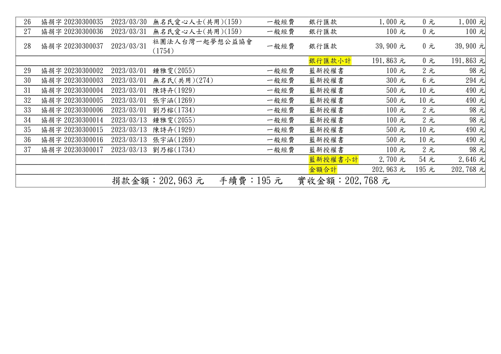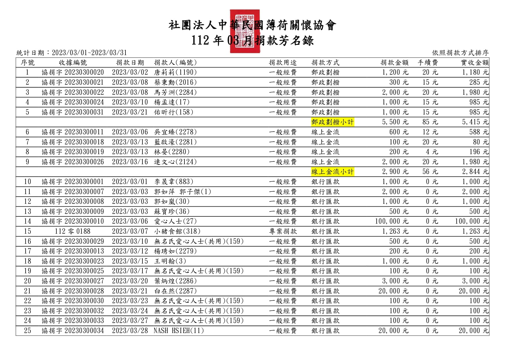 112年03月捐款芳名錄