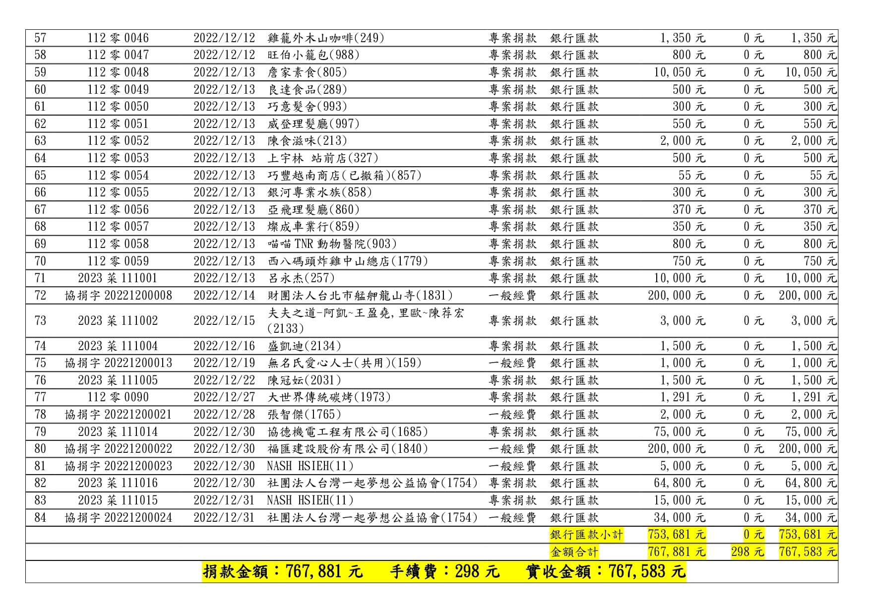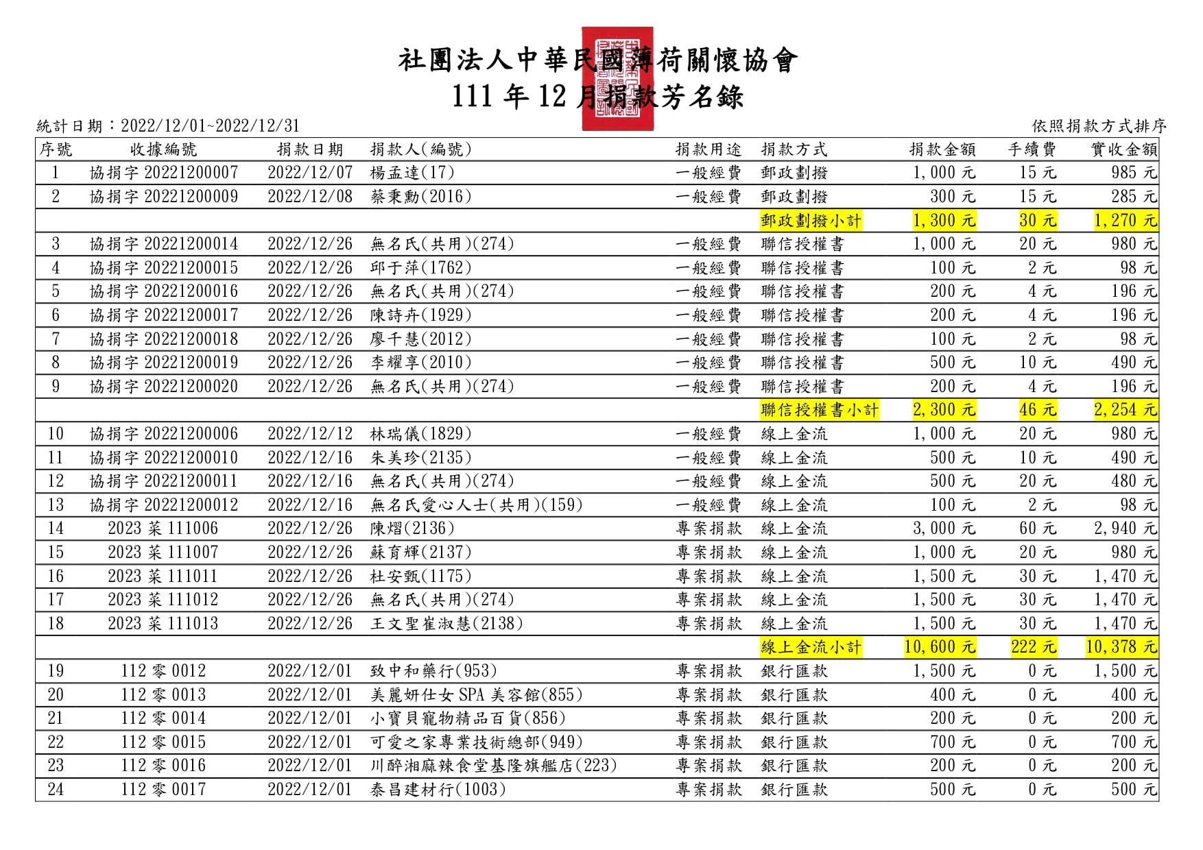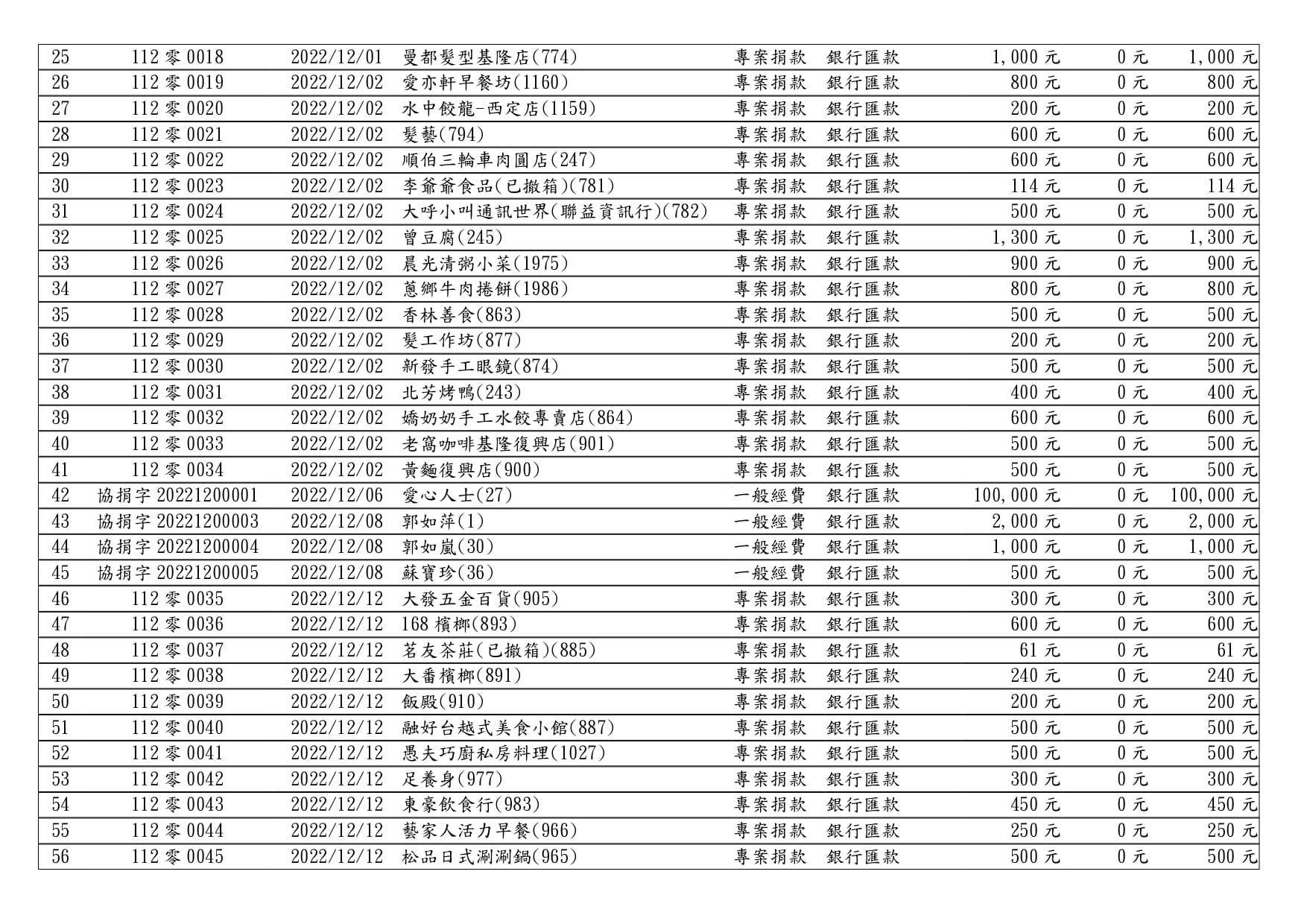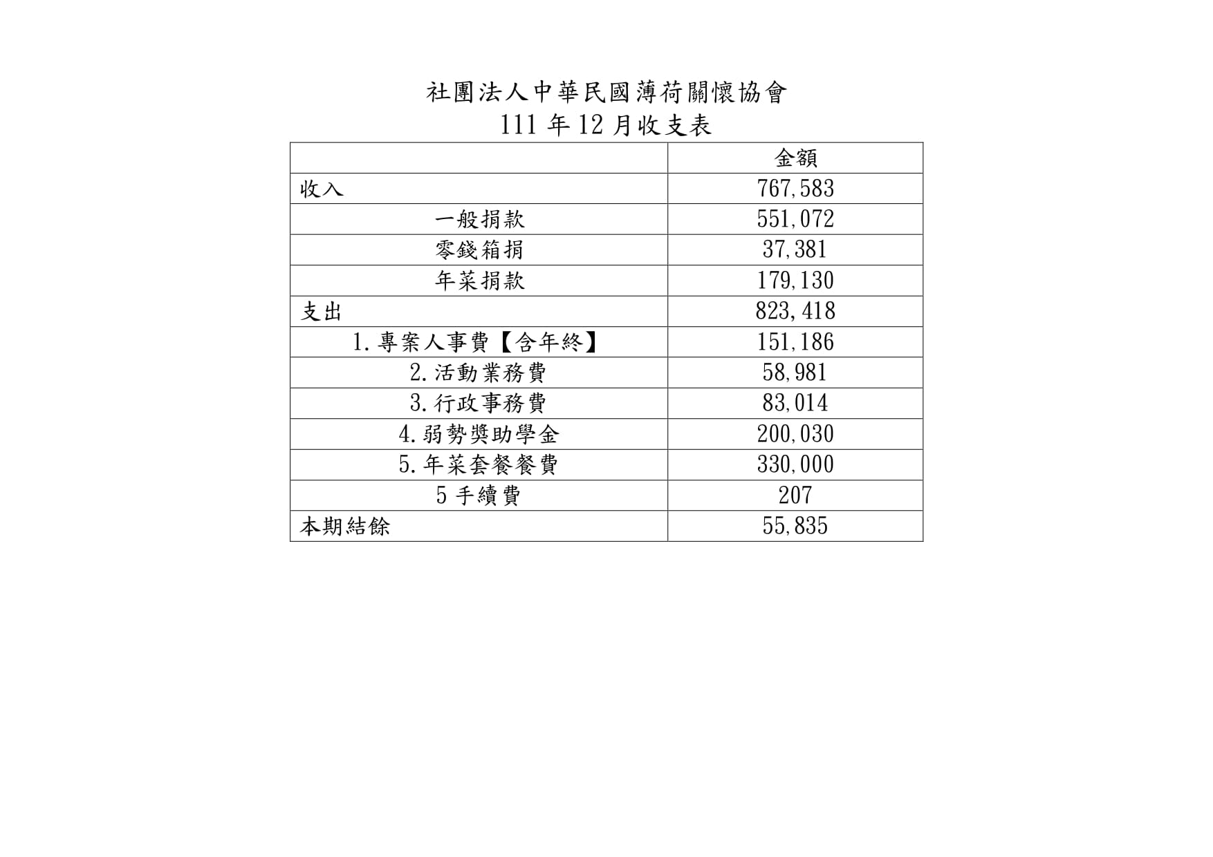 111年12月捐款芳名錄