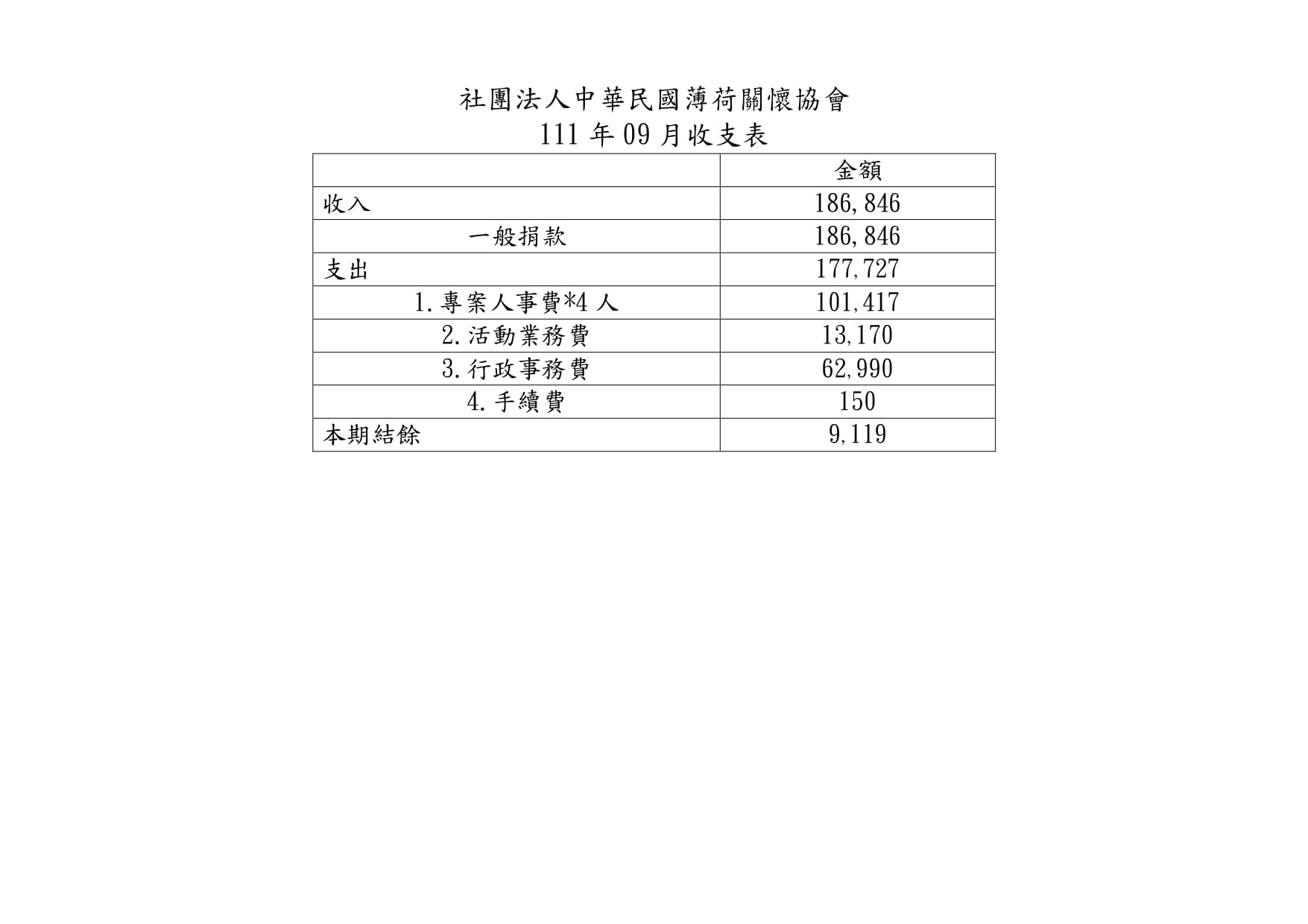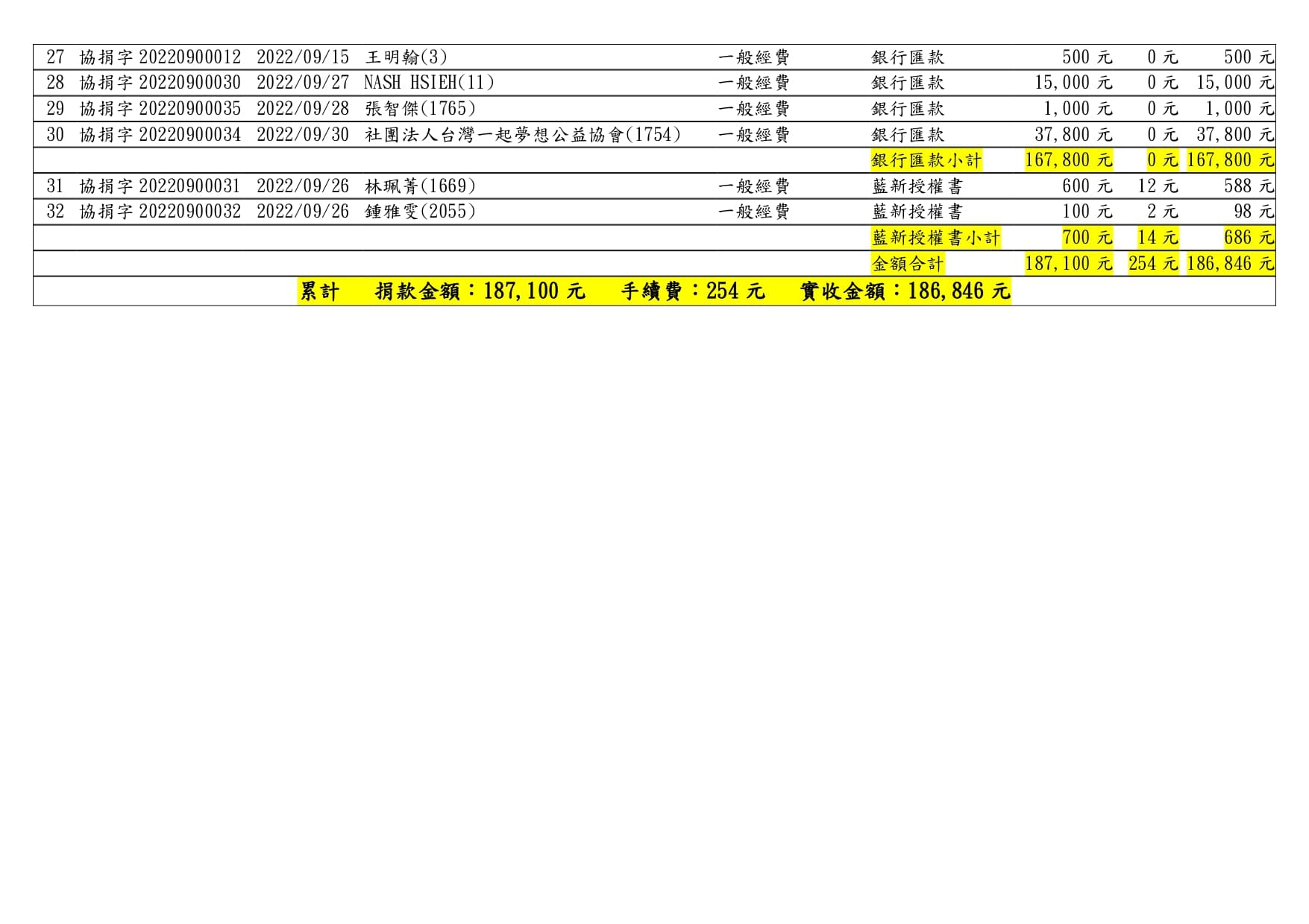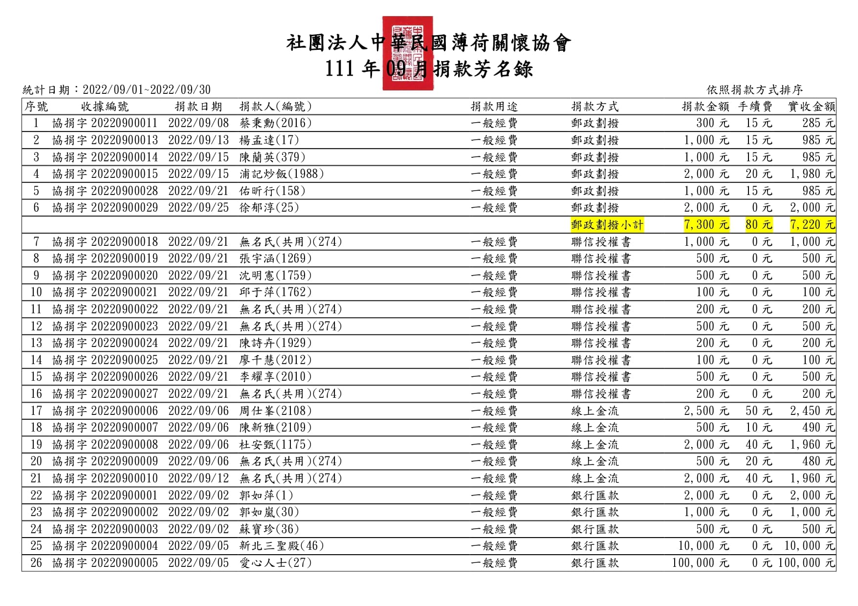 111年09月捐款芳名錄