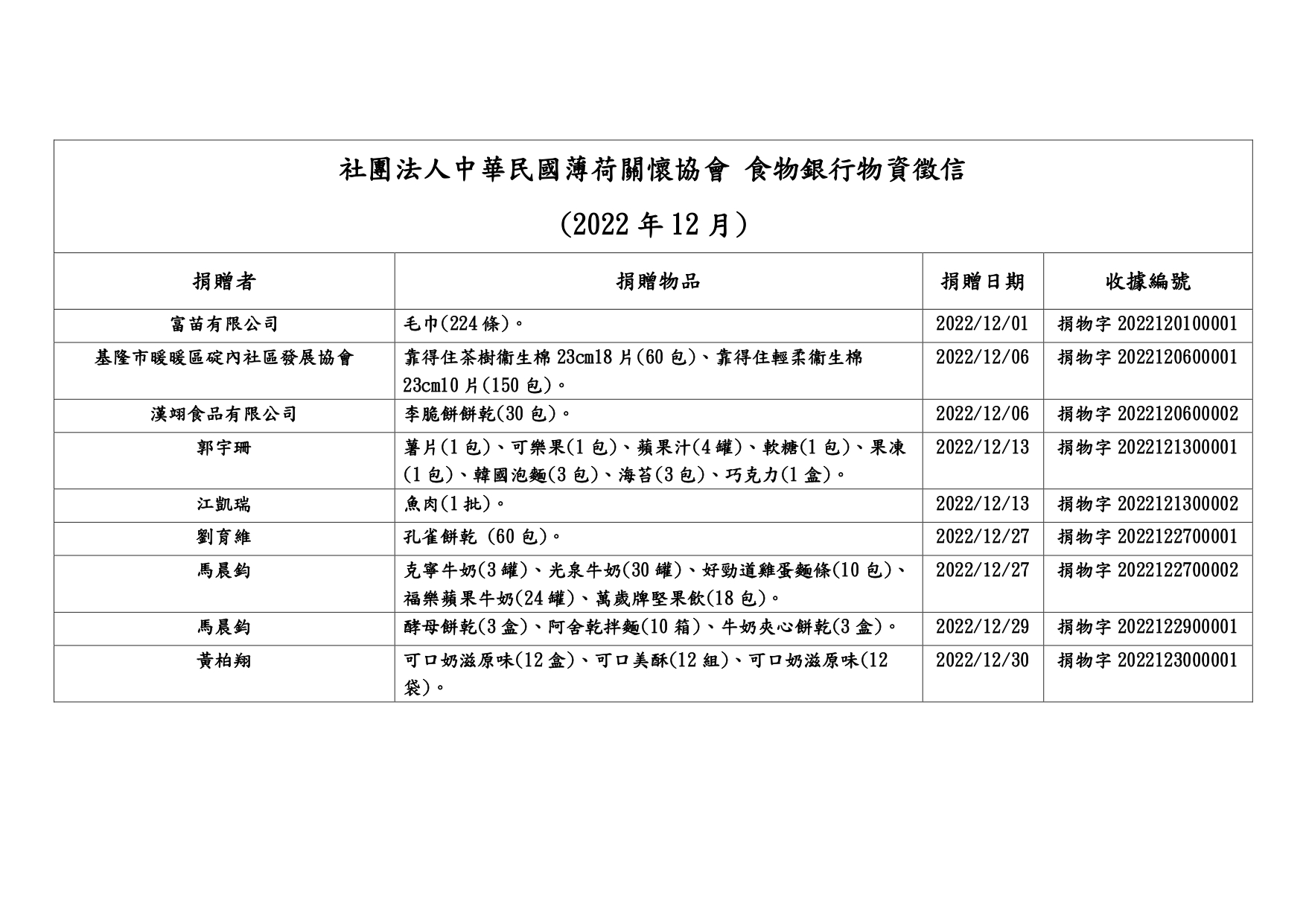 111年12月捐物芳名錄