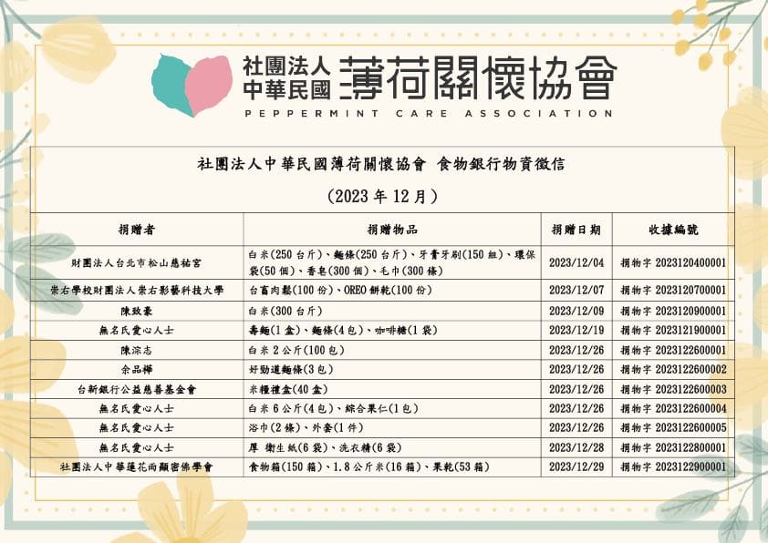 112年12月捐物芳名錄