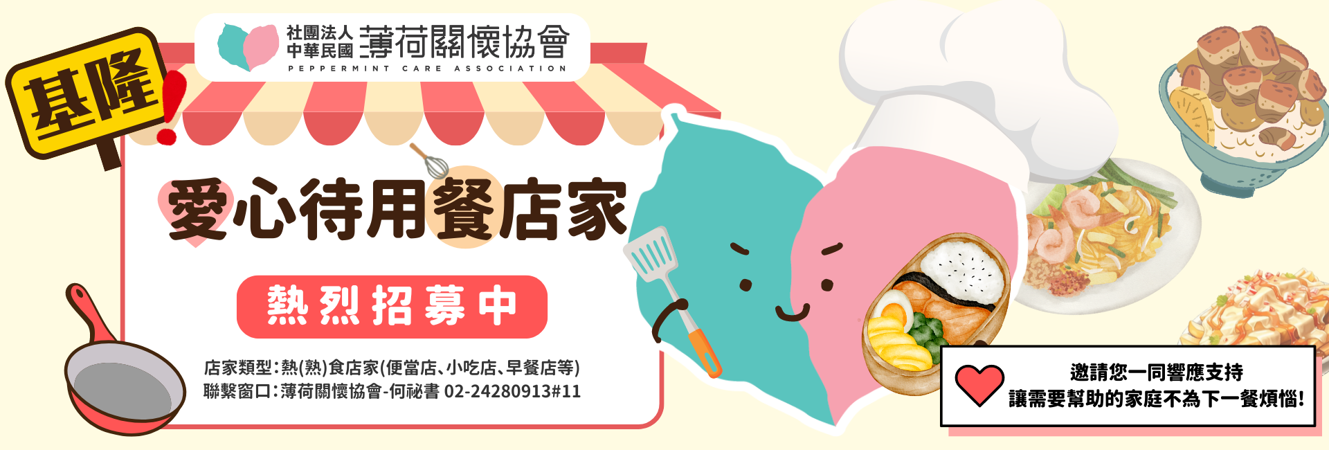 為更加貼近與滿足家庭便利性,邀請更多愛心店家與我們一同響應與支持,讓經濟弱勢家戶不為下一餐煩惱!