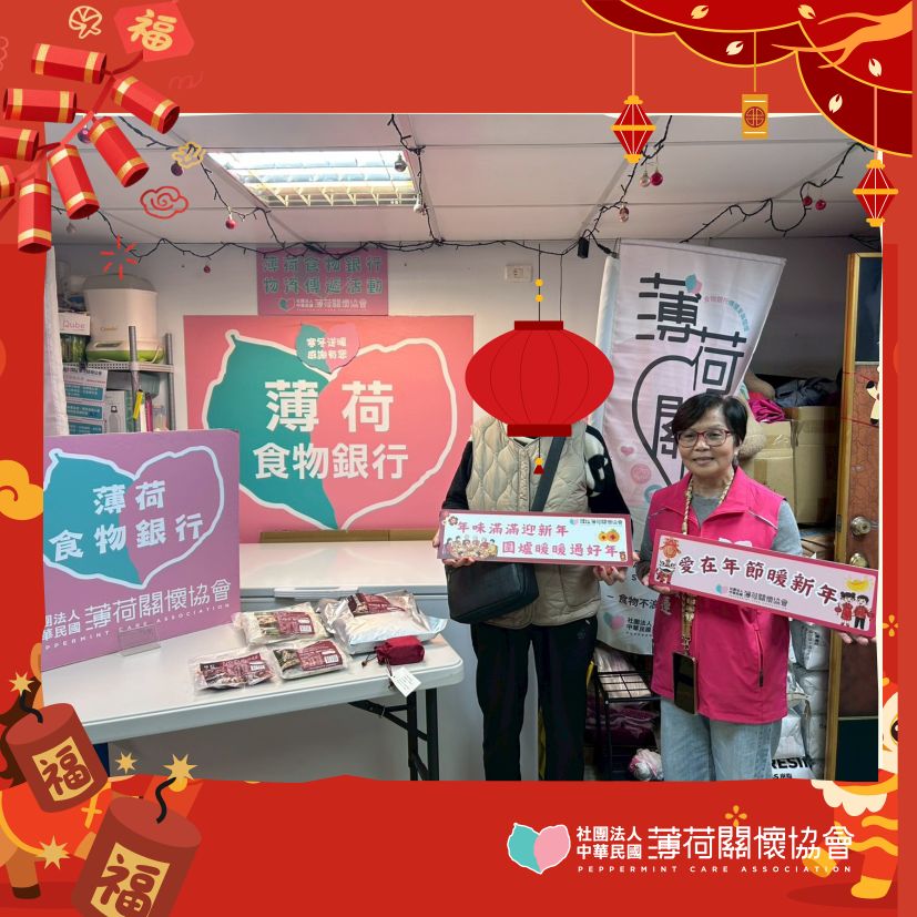 社會的溫暖,因為有愛心人士而延續。這個農曆年前,薄荷關懷協會與每一位支持我們的善心人士一起,用行動傳遞愛,讓弱勢家庭與孤單的長者感受到社會的關懷與祝福,也希望這份溫暖能啟發更多人,把愛心傳下去。
